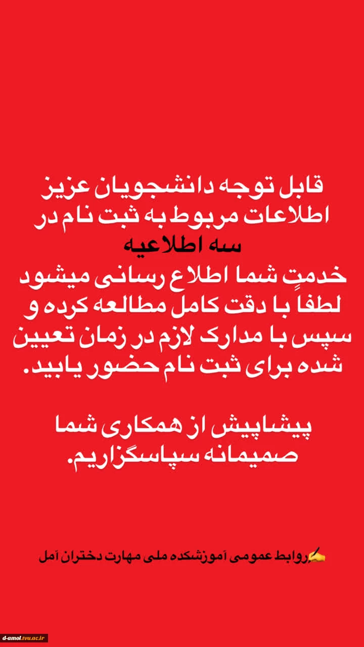 اطلاعیه های ثبت نام دانشجویان جدیدالورود 1405-1404 آموزشکده ملی مهارت دختران آمل 2
